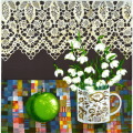 繊細なレースを背景に、白い陶器のマグカップに生けられたスノードロップ。日本では雪待草という名でも知られるこの可憐な花は、厳しい冬を超えて雪の中から顔を出し、春の訪れを告げることから、ヨーロッパでは「希望」のシンボルとされています。